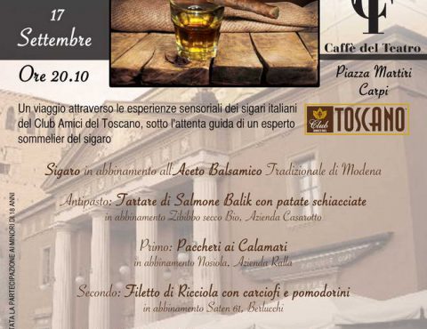 A tutti gli appassionati del mondo del sigaro… ecco per voi un appuntamento imperdibile organizzato da RYS rock your soul! Mercoledì 17 settembre a Carpi, nella storica location del Caffe’ Del Teatro vi attende una serata unica, realizzata in collaborazione con il Club Amici del Toscano, il Club Cigar Carpi e la Tabaccheria Luppi. Un […]